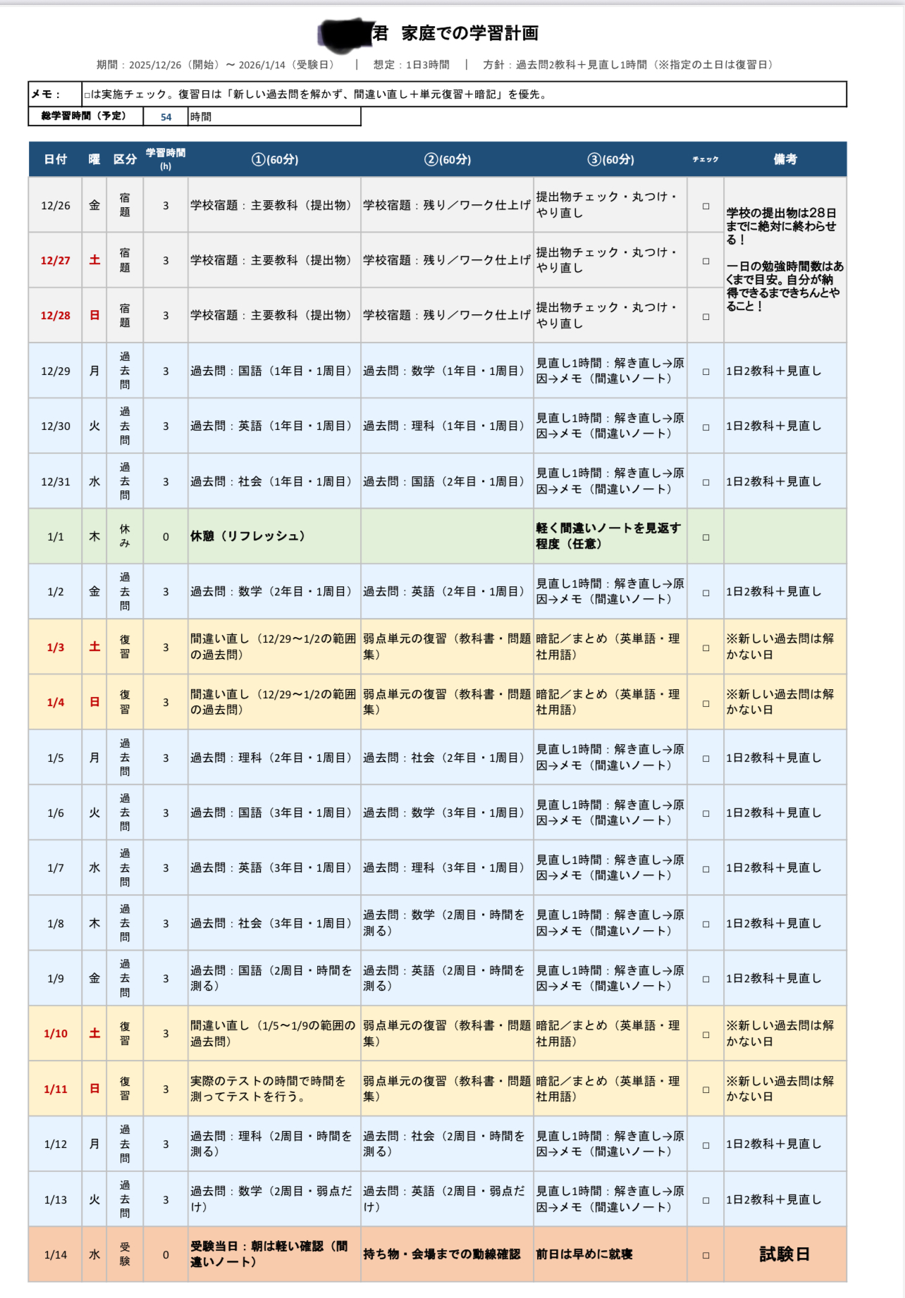 - 受験までの学習スケジュールを作成